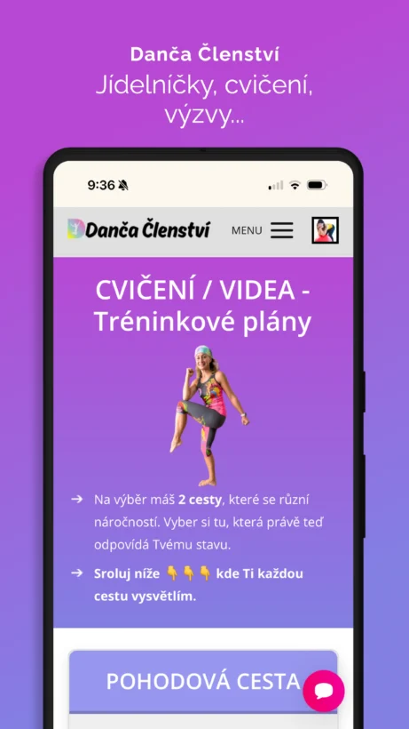 - Pozor ale! Aplikace a Členství na DancaVideo.cz jsou dvě rozdílné věci. Díky aplikaci se do členství hezky dostaneš a nepotřebuješ k tomu mít zaplacené její prémiové funkce. Jsou to taková dvířka. Členství jako takové (tréninkové plány, jídelníčky, výzvy a všechna videa) si ale zakupuješ zvlášť na mých webových stránkách DancaVideo.cz.
